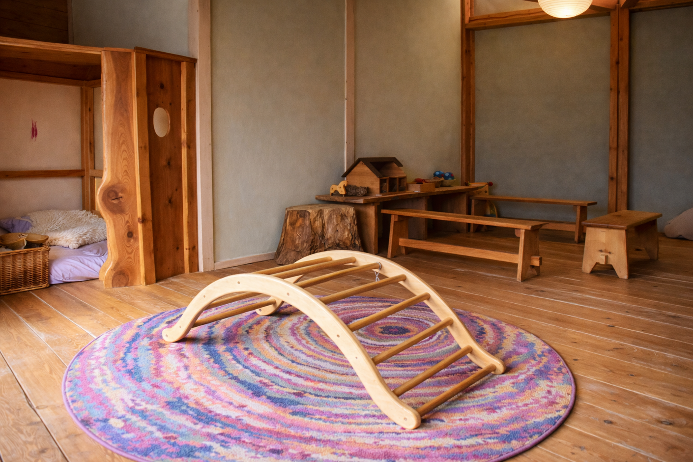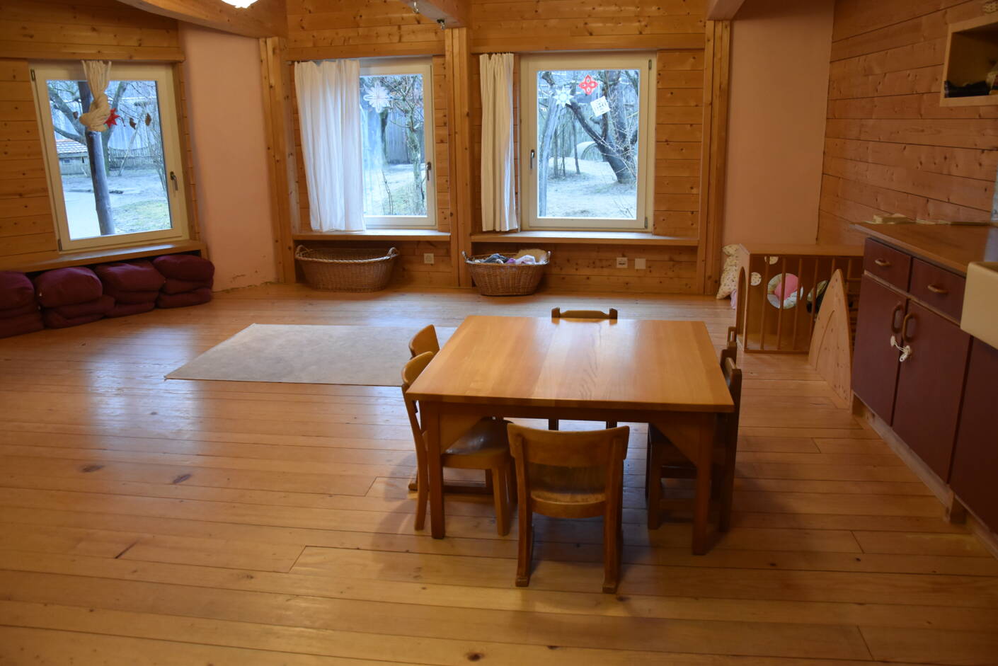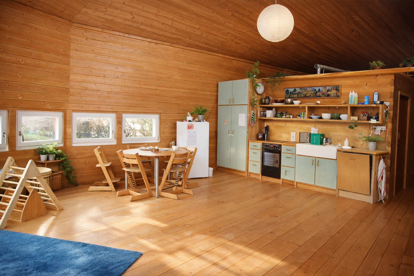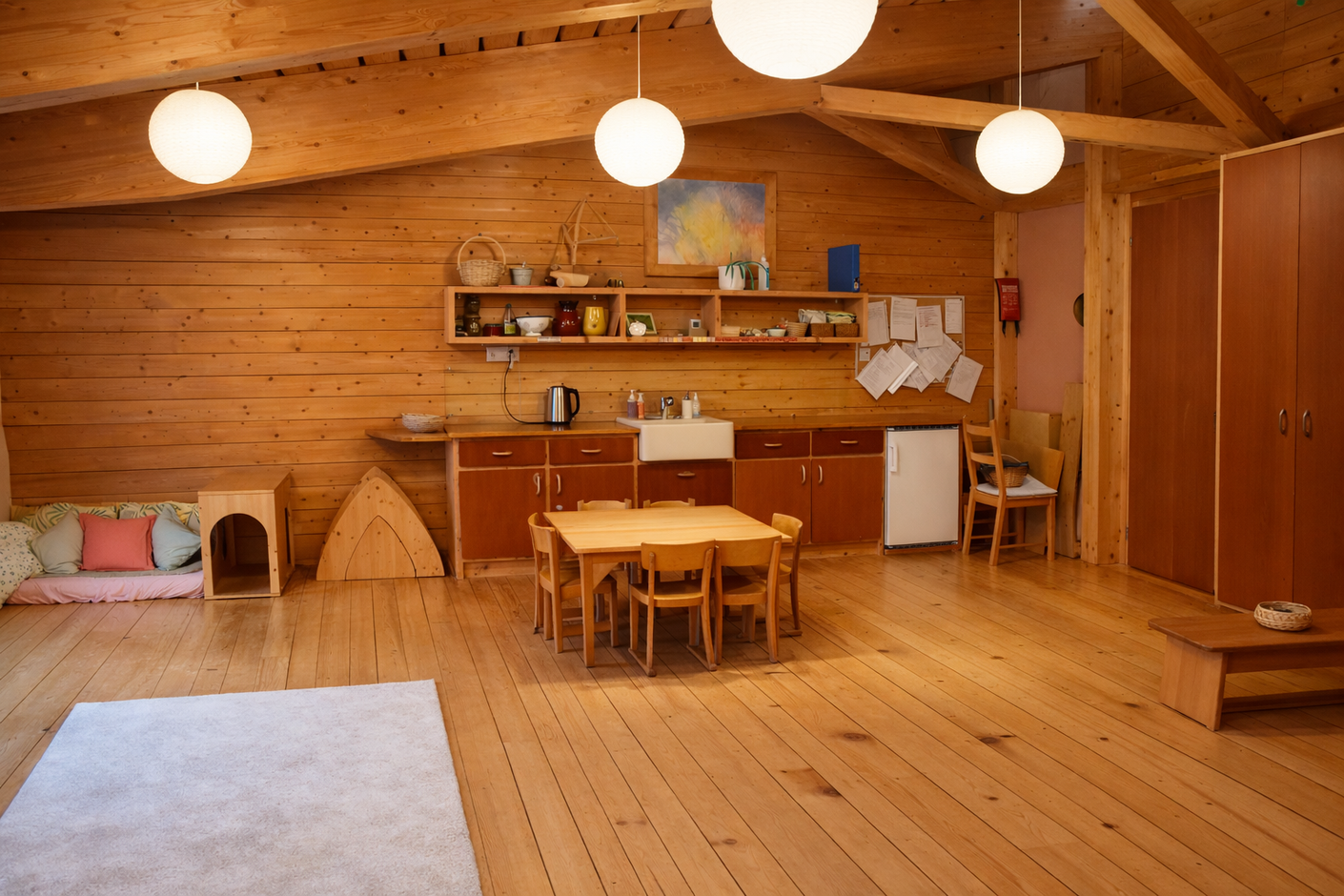 Individuell abgestimmte Betreuung von früh bis spät, die alle Module – Frühstück, Vormittag, Mittagessen und Nachmittag – kombiniert und Rituale, Kreise, Lieder und Spiele integriert, die dem natürlichen Rhythmus des Tages und der Jahreszeiten folgen.